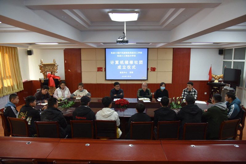 2020年11月2日下午,張家口煤礦機(jī)械制造高級(jí)技工學(xué)校在綜合樓二樓會(huì)議室舉行學(xué)生計(jì)算機(jī)維修社團(tuán)成立儀式。學(xué)校黨委委員、副校長(zhǎng)郎效雷,教學(xué)管理部部長(zhǎng)郝東升,黨委辦公室主任孫英愛(ài),信息中心陳啟鋒、崔清雅、周嬖琨老師出席成立儀式,儀式由信息中心主任劉海陽(yáng)主持。