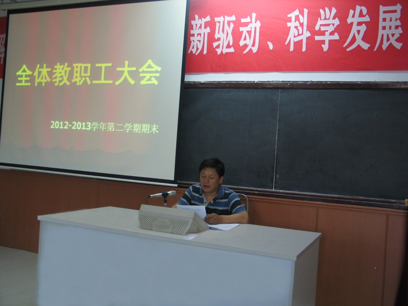 2013年7月5日,我校召開全體教職工大會。校黨委書記、校長高峰同志做了關于2012—2013年度第二學期的主要工作和學校形勢及今后工作發(fā)展對策的講話。