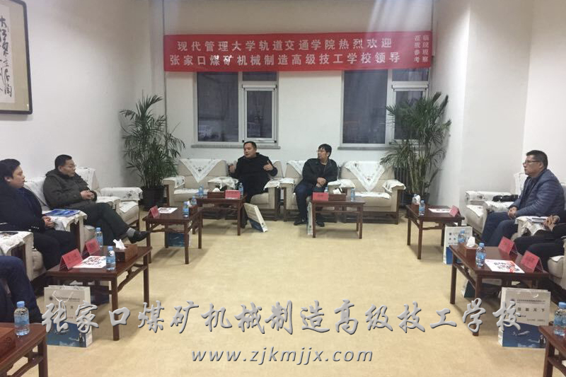 2017年1月5日,張家口煤礦機械制造高級技工學校高峰校長、張樹偉副校長、郎效雷副校長等一行6人到北京現代管理大學進行考察學習。