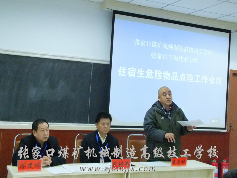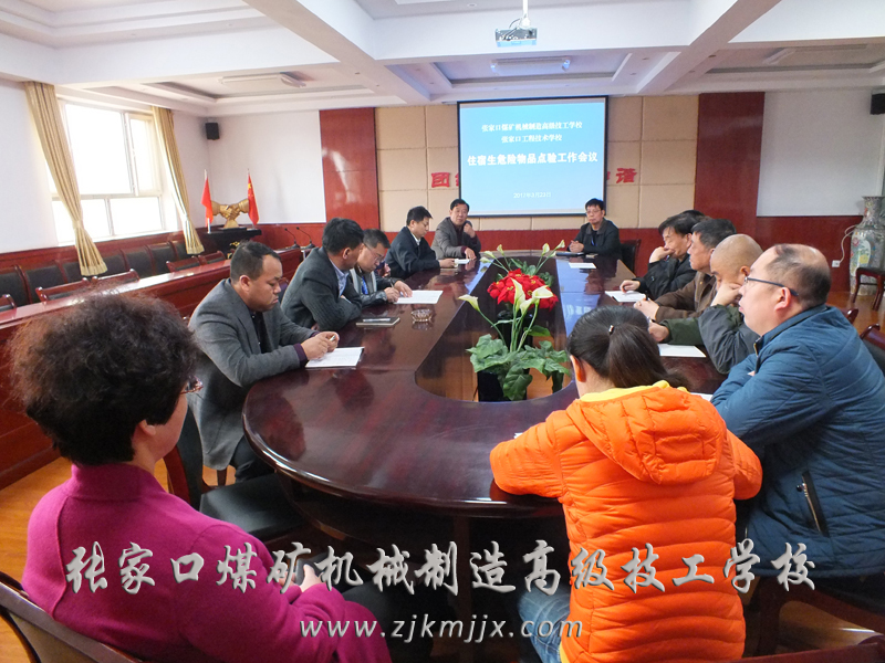 為保證校園安全,排除安全隱患,提高學生自我管理、自我保護意識,2017年3月23日,張家口煤礦機械制造高級技工學校組織開展了住宿生危險物品點驗工作。 學校非常重視此項工作,為保證工作實效,上午在綜合樓二樓會議室召開了住宿生危險物品點驗工作準備會議,校領導和相關部室領導參加了會議。