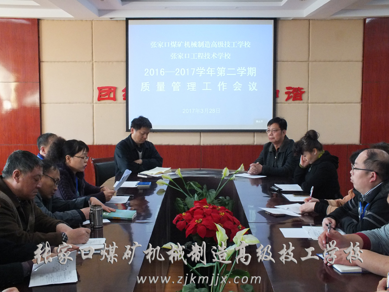 3月28日下午,張家口煤礦機(jī)械制造高級(jí)技工學(xué)校在綜合樓二樓會(huì)議室召開2016-2017學(xué)年第二學(xué)期質(zhì)量管理工作會(huì)議,學(xué)校領(lǐng)導(dǎo)、各部門負(fù)責(zé)人及質(zhì)管員參加了會(huì)議。