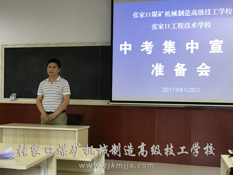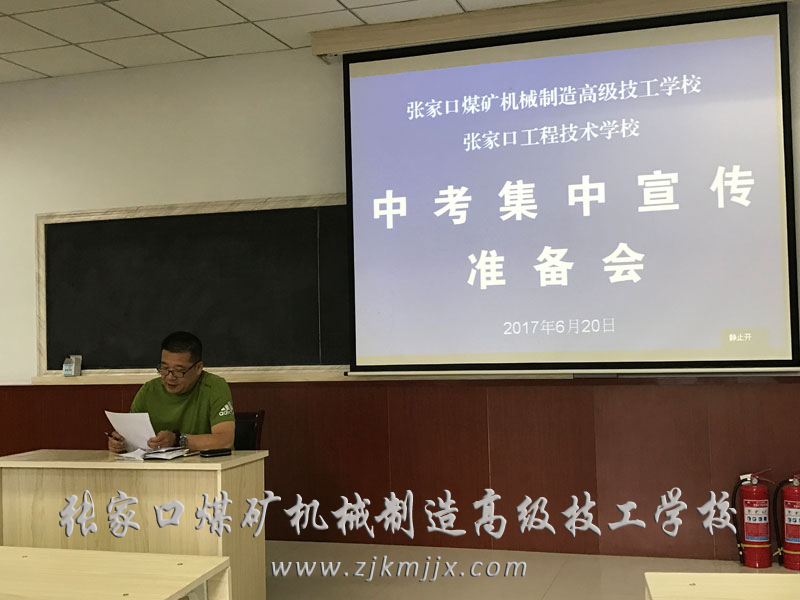 6月20日下午,張家口煤礦機械制造高級技工學校在校綜合樓一樓階梯教室召開中考集中宣傳準備會。