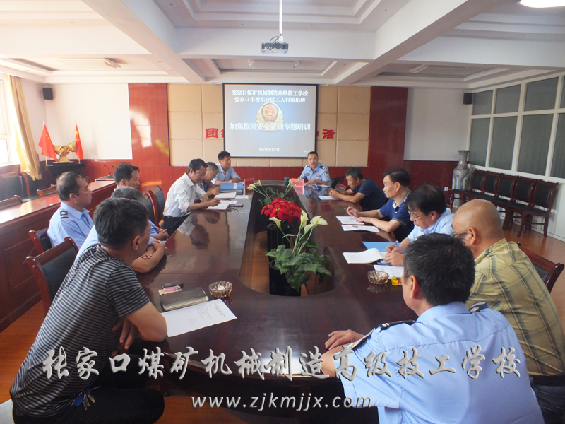 9月7日下午,張家口煤礦機械制造高級技工學校在綜合樓二樓會議室組織新聘的保安和負責安保工作人員以及各合作辦學機構負責人召開了專題培訓會,邀請到了橋東公安分局工人村派出所段翔宇副所長作了校園安全管理專題講座。會議由行政管理部部長馬保衛主持。