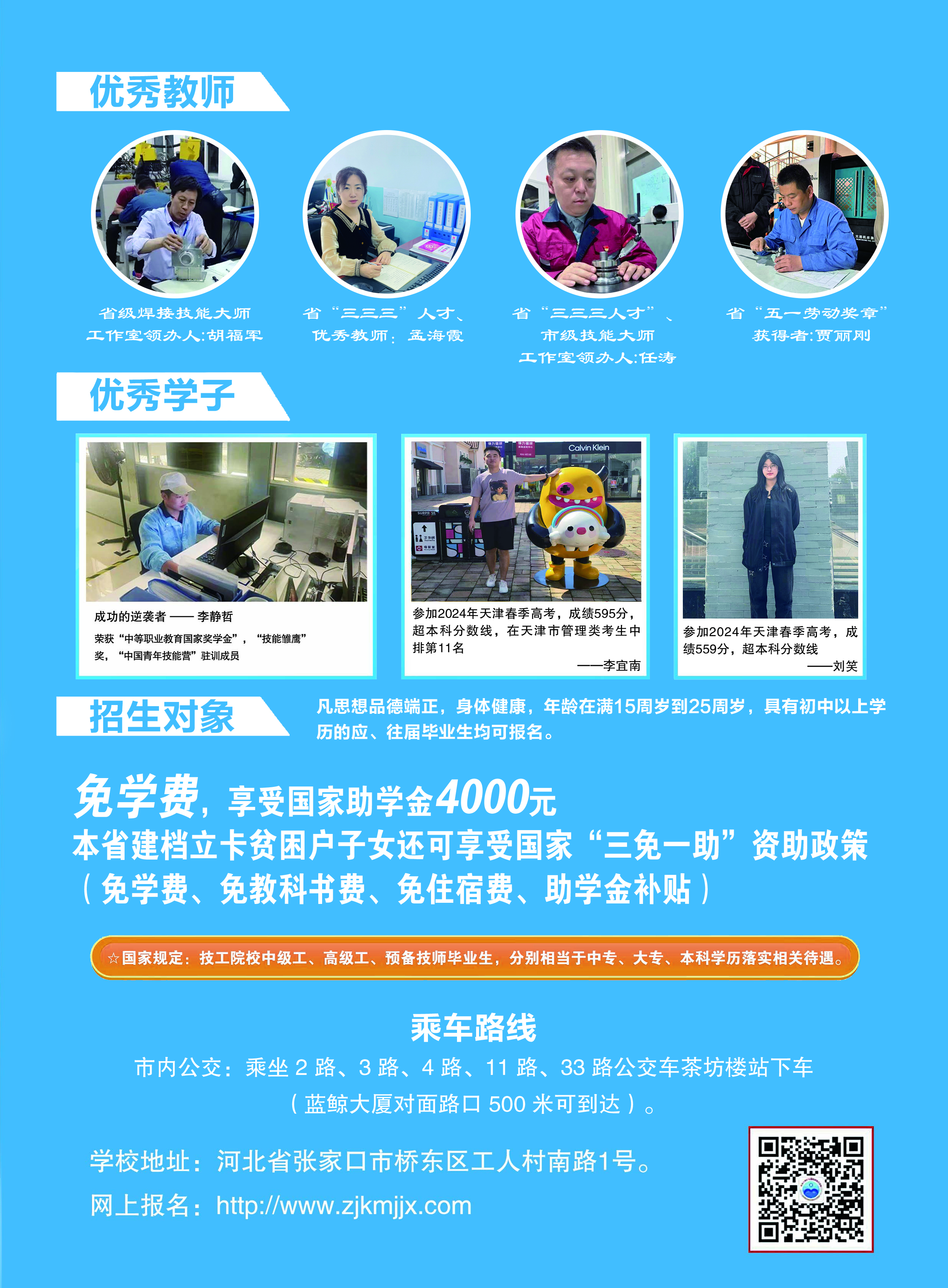 獲取學校最新資訊請掃描下方二維碼關注張家口煤礦機械制造高級技工學校微信公眾平臺