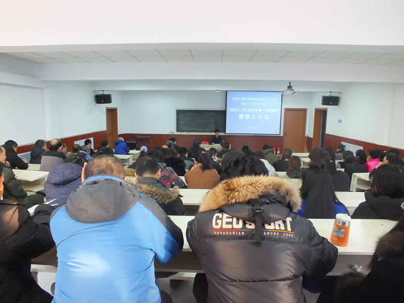 2018年1月13日上午,張家口煤礦機械制造高級技工學校在綜合樓多媒體教室召開了2017-2018學年第一學期末教職工大會。會議由張樹偉副校長主持,全體教職工參加了會議。