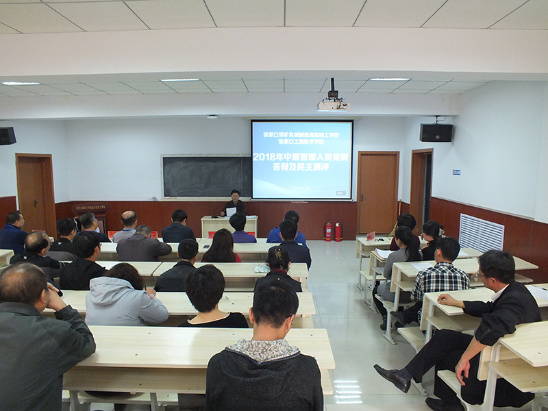 張家口煤礦機械制造高級技工學校根據發展需要,對現設置的機構和部門職責范圍進行了相應的調整;并對調整后部分崗位的中層管理人員實施公開競聘。經過個人報名、資格審查、公告競聘人員名單等前期工作后,于2018年3月28日,在綜合樓階梯教室舉行了競聘答辯及民主測評大會。會議由副校長張樹偉主持。