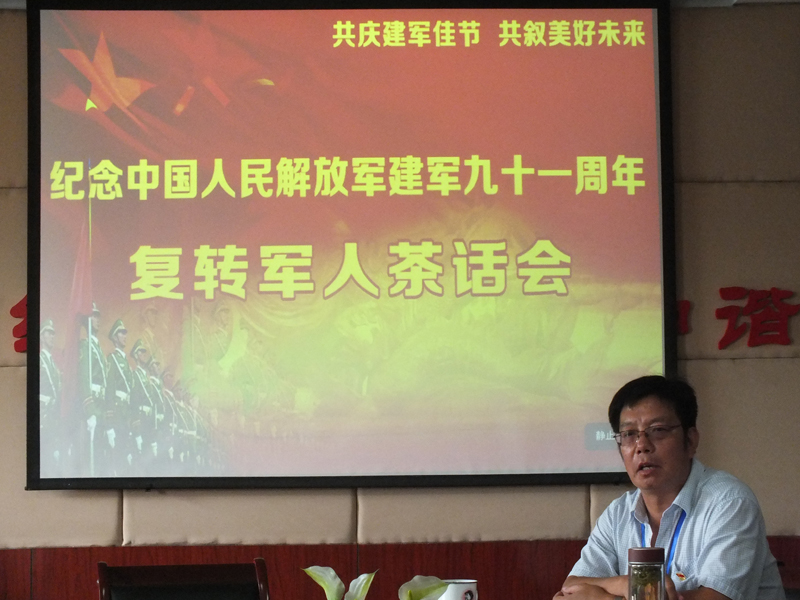 座談會在《咱當兵的人》嘹亮有力的歌聲中開始。黨委委員、副校長張樹偉同志為全體復轉軍人送上了節日的祝賀。黨委副書記、校長高峰同志與參會人員共同慶祝光輝節日,共同回憶了中國人民解放軍的光榮傳統。高校長指出,復轉軍人要繼續發揚中國人民解放軍不怕苦、不怕累的精神,立足崗位做好工作;要不忘初心、牢記使命,為學校的發展建言獻策,以軍人的作風帶領群眾干實事、真干事;要嚴格要求自己,繼續保持軍人形象,以攻堅克難的精神破解工作中遇到的問題。高校長祝愿所有的復轉軍人身體健康、家庭和睦。
