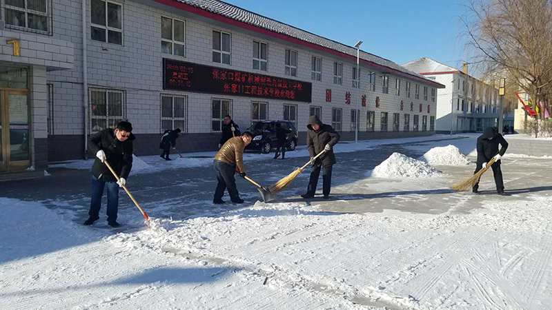 瑞雪兆豐年,春風迎新歲。2019年2月14日,張家口市迎來新年的第一場雪。銀裝素裹下的張家口煤礦機械制造高級技工學校校園,粉妝玉砌,分外美麗,但也給假期中出入校園的師生帶來了不便。