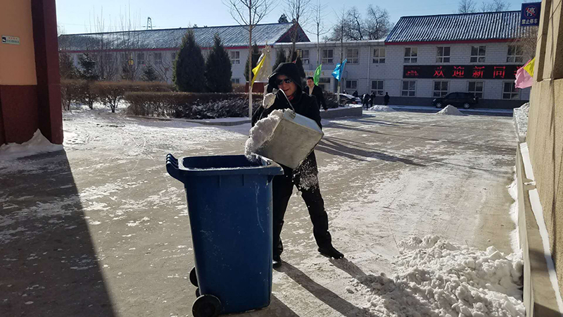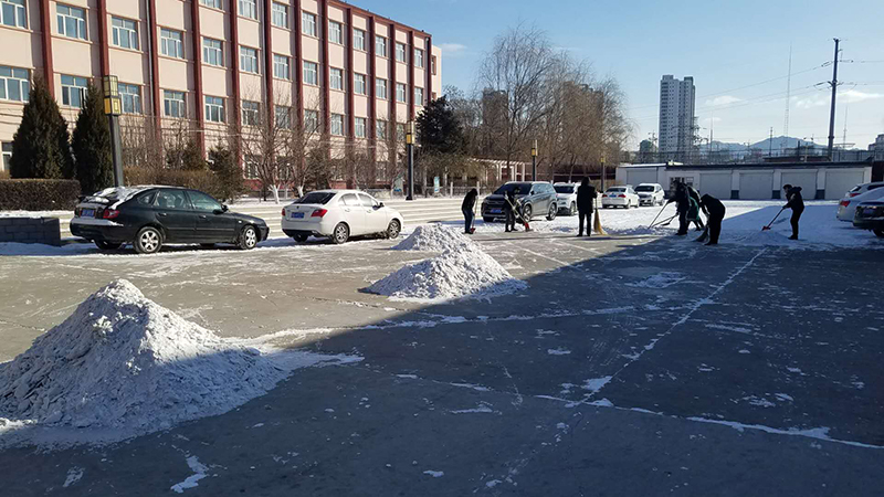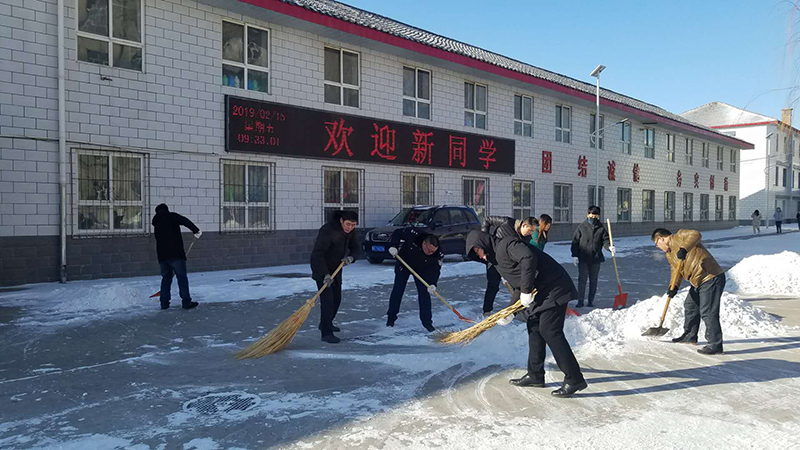 2月15日上午,部分教職工早早來到學校,拿上掃帚、鐵鍬等工具,積極主動地開始了清掃校園積雪的勞動。在黨委副書記、校長高峰同志的帶領下,越來越多的師生加入到清掃積雪的隊伍中。積雪較厚面積又大,同志們累得腰酸背痛,直直腰、捶捶背、歇口氣,又投入到清掃中。經過師生兩個多小時的勞動,校外到校園、校園內到教室、宿舍、食堂、實訓中心等各條道路的積雪清掃得干干凈凈,保證了師生的出入安全。 愛校如家,我們大家為義務清掃校園的師生點贊。