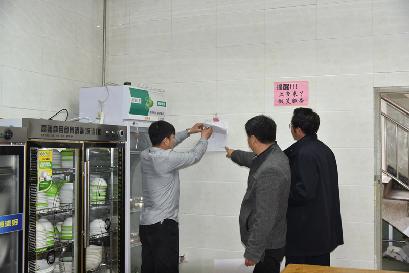 檢查組對(duì)食堂相關(guān)物品管理臺(tái)賬、采購(gòu)索票索證、食品留樣、環(huán)境衛(wèi)生、從業(yè)人員個(gè)人衛(wèi)生和工作服穿戴情況、食品原材料存放和管理、餐具消毒設(shè)施使用情況等進(jìn)行了檢查。食堂食品及原材料整體管理規(guī)范、存放符合相關(guān)要求,存在個(gè)別制度未上墻、部分工作記錄不全等問(wèn)題。檢查組要求食堂針對(duì)存在的問(wèn)題,制定整改措施抓緊落實(shí)。