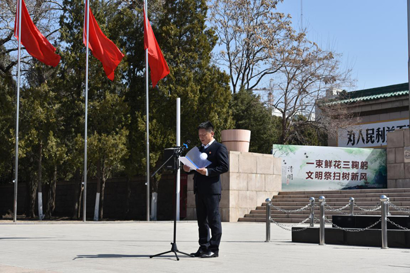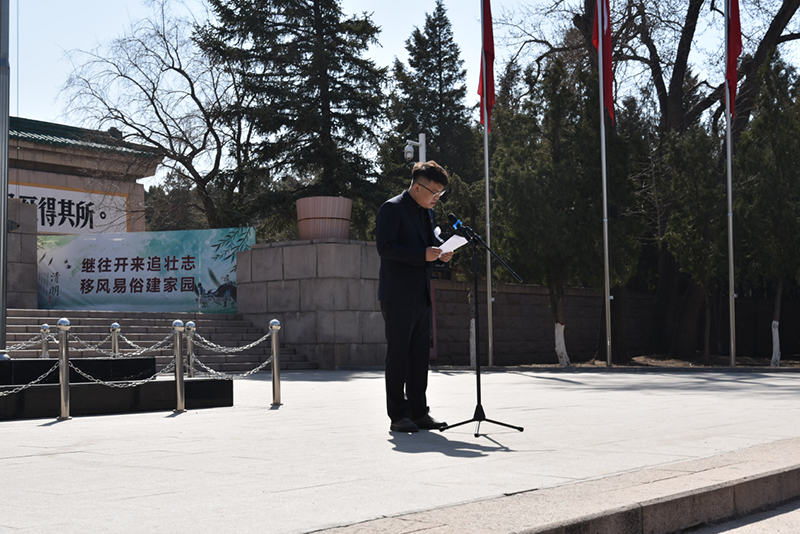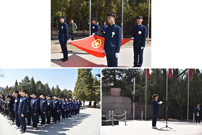 在學生工作部廉鳳霞部長凝重而充滿敬意的主持下,學生代表向烈士敬獻花圈,全體師生嚴肅恭敬地向革命英雄默哀致敬,表達對先烈們崇高的敬意。學生代表邢化然同學發言,莊重表達了對先烈的無限敬意和無盡懷念,表示作為新時代的青年,一定會肩負起新的歷史時期的責任和使命,學習先輩的愛國主義精神和英雄氣概,傳承“紅色基因”,刻苦學習、練好技能,成為德技雙馨的技能人才。