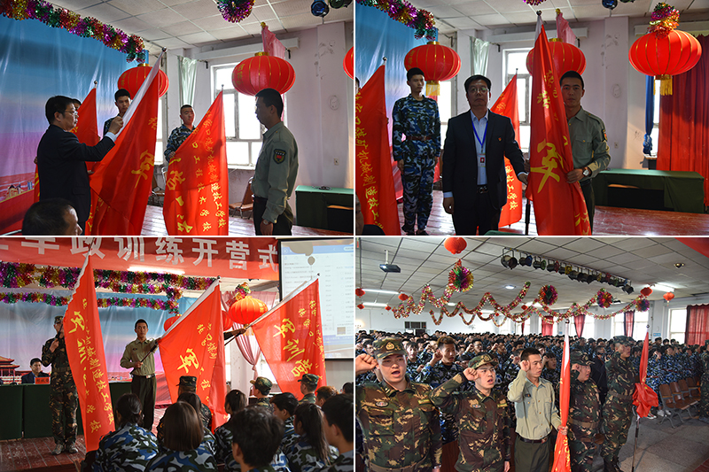 開營式上進行了軍訓營授旗儀式:校長高峰同志向軍訓營授營旗;軍訓營營長李世舉同志向各連隊授連旗。全體參訓教官和學生進行了莊嚴的集體宣誓。