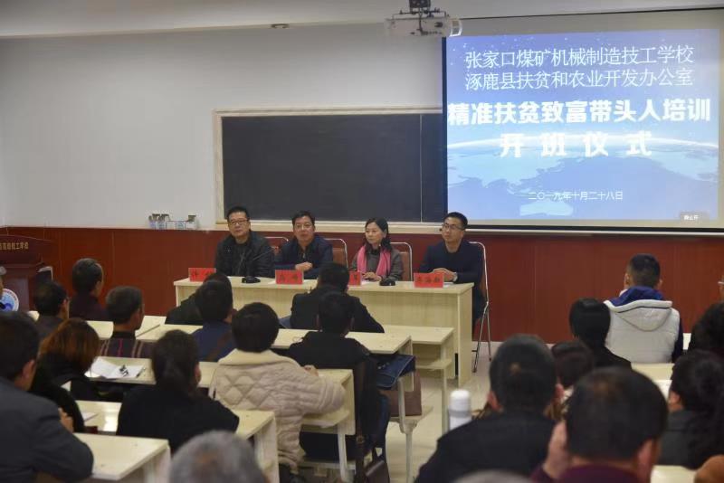 2019年10月28日下午,張家口煤礦機械制造技工學校與涿鹿縣扶貧辦聯(lián)合舉辦的“2019年精準扶貧致富帶頭人技能提升培訓班”開班儀式在我校舉行。校領(lǐng)導及涿鹿縣扶貧辦人員出席了開班儀式。