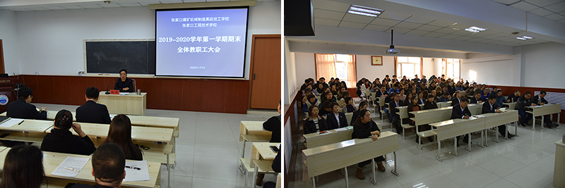 2020年1月3日,張家口煤礦機械制造高級技工學校在綜合樓一樓階梯教室召開2019-2020學年第一學期期末教職工大會。會議由黨委委員、副校長張樹偉同志主持,全體教職工參加了會議。 會上,黨委副書記、校長高峰同志結合2019年國內主要事件、職業教育熱點事件,解讀了《國家職業教育改革實施方案》《河北省職業教育改革發展實施方案》,明確了2020年學校辦學的總體目標為:完善制度、強抓內涵、凝聚力量、保持規模,走高質量發展的辦學之路。高校長總結了本學期完成的主要工作,指出了工作中存在的問題,要求全體教職工堅持問題導向,針對存在問題制定整改措施,在下學期逐步落實。 高校長安排部署了假期工作,強調值班人員要加強巡查巡視,確保校園的安全;要求全體黨員和中層管理人員,嚴格遵守黨紀黨規和學校工作作風紀律,過一個平安、祥和、節儉的春節。對假期中加班的部分教職工,高校長肯定了教職工的奉獻精神。
