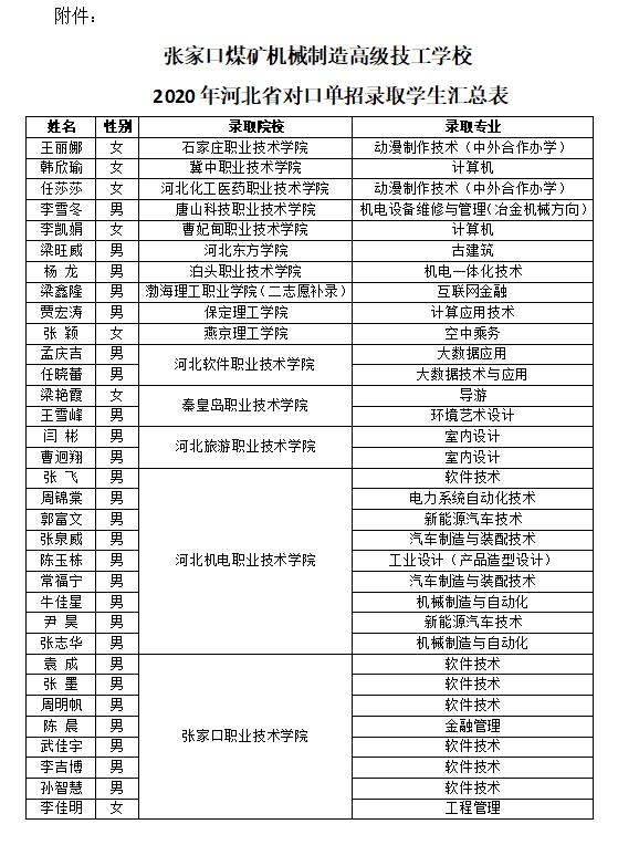 張家口煤機高級技校在2020年河北省對口單招考試中再獲佳績